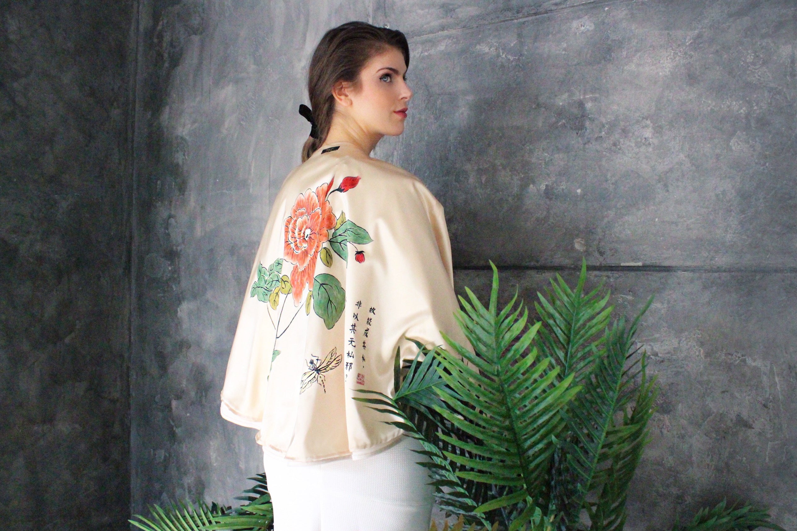 It took two and a half months to make the 8 pieces minimalistic collection, each piece need 100 hours or more to make that’s with measurements and pattern already in place. The painting inside each garment takes about one to two days to paint, another day or so to color, the original one took longer with creating the concept of the painting. It's very challenging to paint on soft, delicate fabrics, very different from painting on paper or hard materials. The collection also contains the first eight verses of the original “Tao Te Ching” in Chinese language, one verse inside each style with my logo stamped on the silk lining also in Chinese. The logo stamp is a handmade sculpture made from jade-stone by an artist from my hometown, GuangZhou. On the outside, we embellish each garment with different Chinese buttons, some made from jade; some made from porcelain with small detail paintings on each one; some made from jade stone with gold paint, some made from wood with paint; some made from different colors of enamel and we also use some crystal buttons and rabbit fur balls as embellishment. If you look at them up close, you will find each button is different because they are hand painted, except the jade ones we can’t paint on them, but you can see the difference of each jade buttons… This collection is just a fraction of what I have in mind, it’s just the beginning.